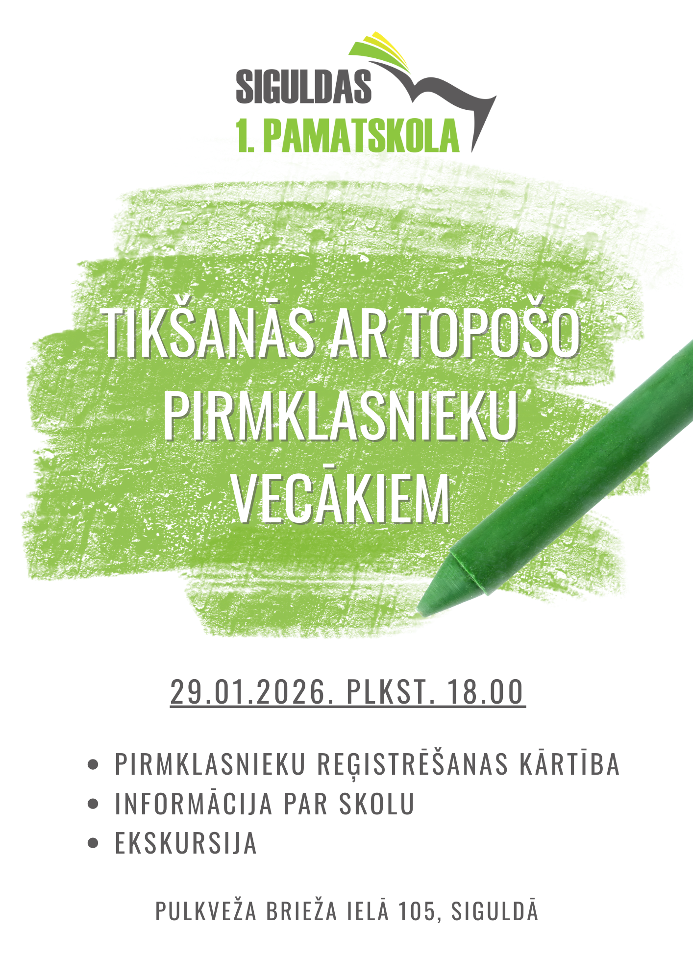 Lai iepazīstinātu topošo pirmklasnieku vecākus ar 1. pamatskola piedāvātajām mācību programmām un nodarbību norisi, pagarināto grupu pieejamību un citām aktualitātēm, 29.01.2026. tiks organizēta informatīvā sanāksme. Vairāk informācija par uzņemšanu