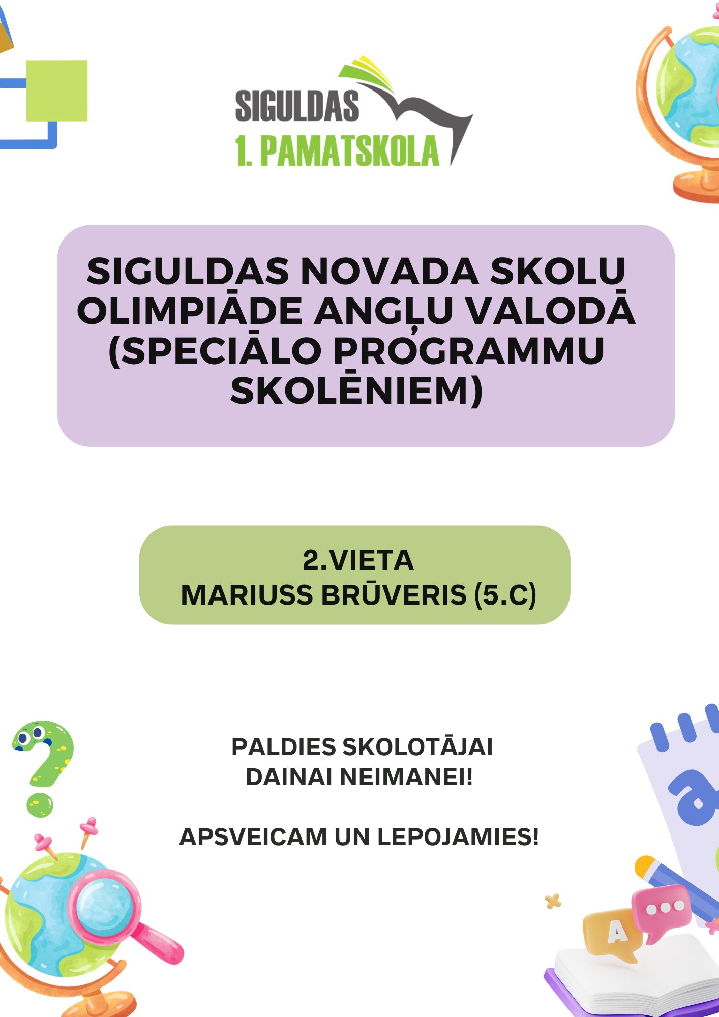 Siguldas novada skolu olimpiāde angļu valodā (speciālo programmu skolēniem). Apsveicam un lepojamies!